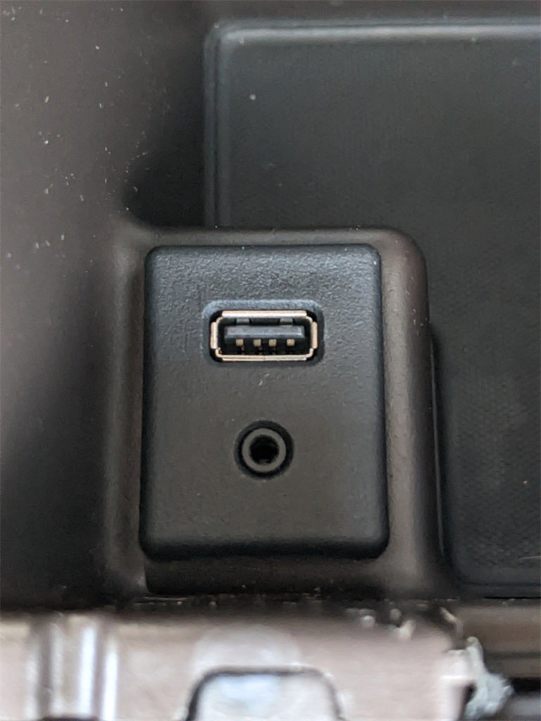 - Audio system feature, auxiliary input jack, located in center console